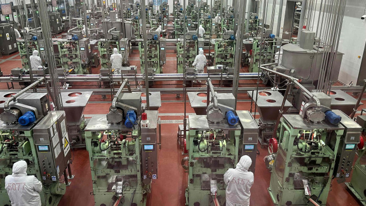 走进卫龙好吃杏林工场,分娩线阻滞运行,温度、湿度、原料景色等参数及时监测。相干负责东谈主先容,自动化配置减少了东谈主工斗争带来的风险,洁净车间界限了交叉浑浊的可能,模范化工艺确保每一批居品口味领悟。