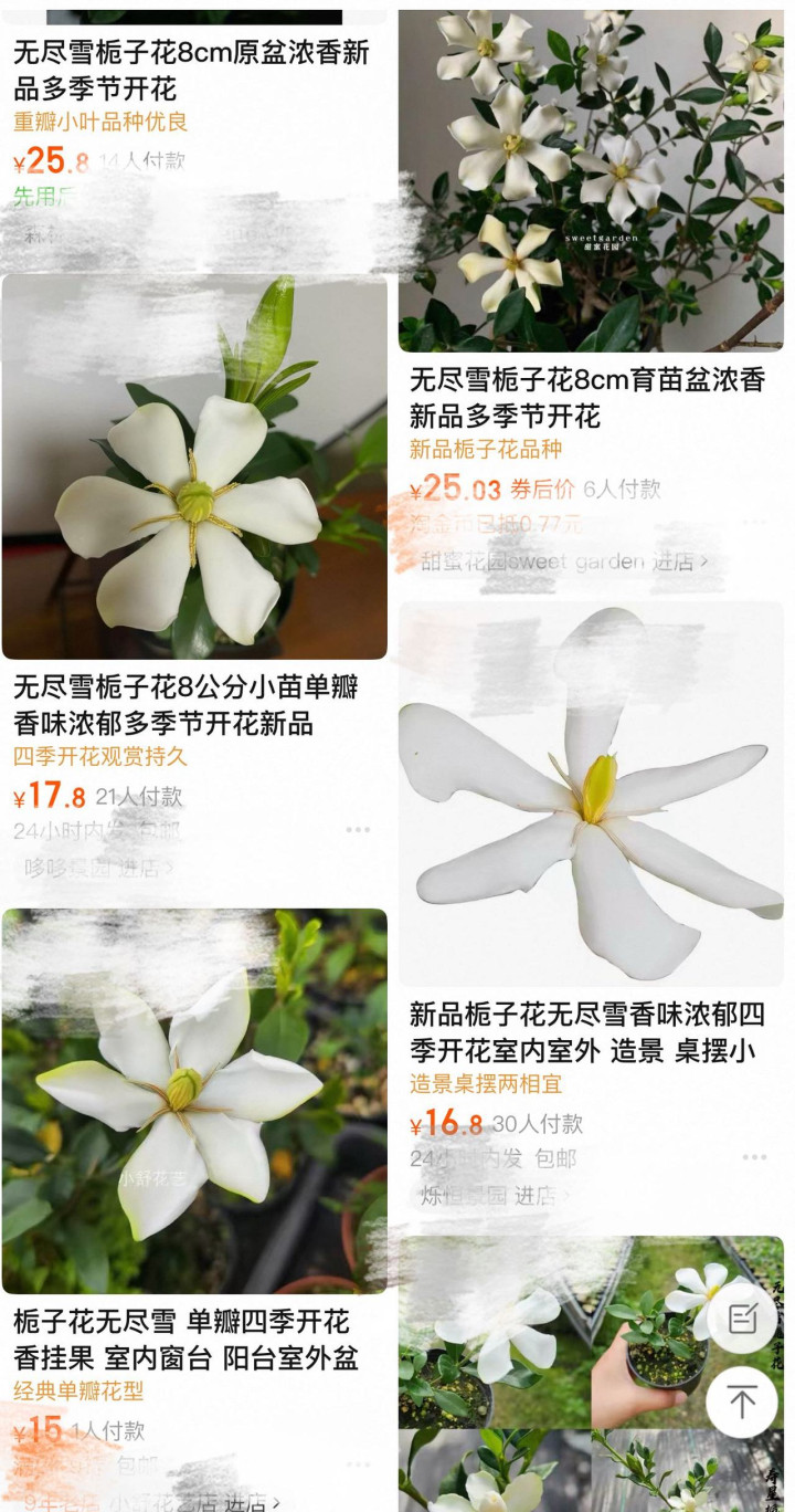 尽管打赢了最高院的讼事,但记者探问发现,在电商平台,仍有无数家商户以“无限雪”称呼售卖疑似“香雪”的栀子花,部分商家致使标注“多季吐花”“险些不收尾”,与“香雪”的中枢肠状高度一致。