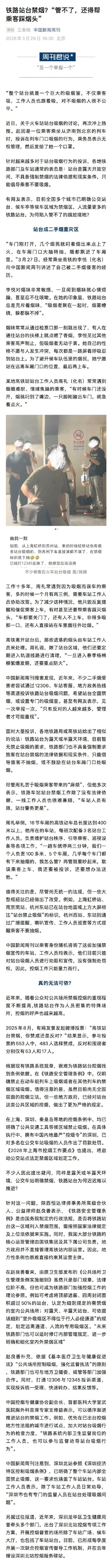 尽管周礼苦于抽烟乘客带来的“费劲”,但他屡次暗示,铁路车站站台禁烟职责除了莫得法律依据,一线职责主谈主员也很难兼顾,“车站东谈主员有限,站台警务更是”。