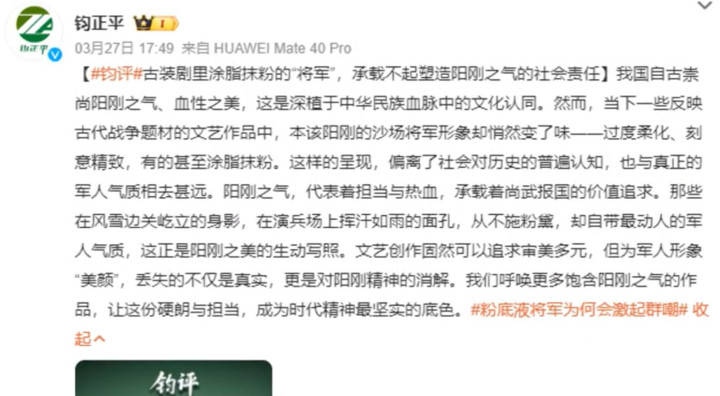 前段时分古偶剧《逐玉》可把环球折腾坏了,张凌赫饰演的大将军成了全网吐槽的最大bug。