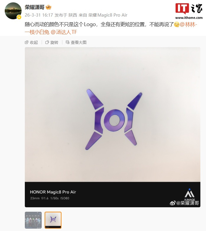 @荣耀潇哥还共享了另一张实拍图,展示了游戏本A面的发光LOGO正散漫紫色光线。由此来看,AG庄闲游戏官网首页荣耀WIN游戏本首曝的可发光LOGO维持色调切换,可与“猎东说念主火器库”进行灯效主题的联动。