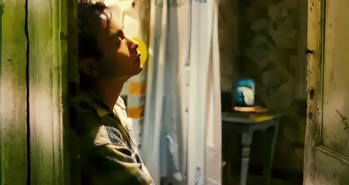 张国荣饰演的流行音乐制作主说念顾客家明,在见到女友为我方画的满墙非洲景不雅顿然,热泪盈眶,照相机镜头永久珍重于顾家明在这一进程中极其微细的面部变化。