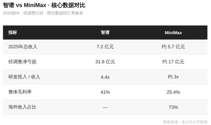 2025年,智谱的全体毛利率为41%,高于MiniMax的25.4%。