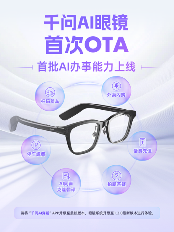 [CNMO科技音信]4月2日,千问AI眼镜发布后初度进行OTA升级,上线首批“AI职业”材干。通过深度接入淘宝闪购、支付宝,复古话费充值、扫码骑车、泊车缴费、语音点外卖等高频生计服务,这考据了AI眼镜类结尾开采不错从“恢复问题”转向“把事办成”,成为大模子落地真确世界的物理接口。