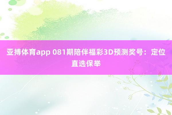 亚搏体育app 081期陪伴福彩3D预测奖号:定位直选保举