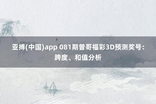 亚搏(中国)app 081期曾哥福彩3D预测奖号:跨度、和值分析