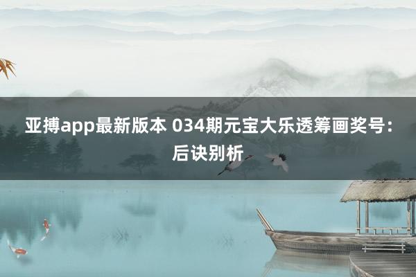 亚搏app最新版本 034期元宝大乐透筹画奖号:后诀别析