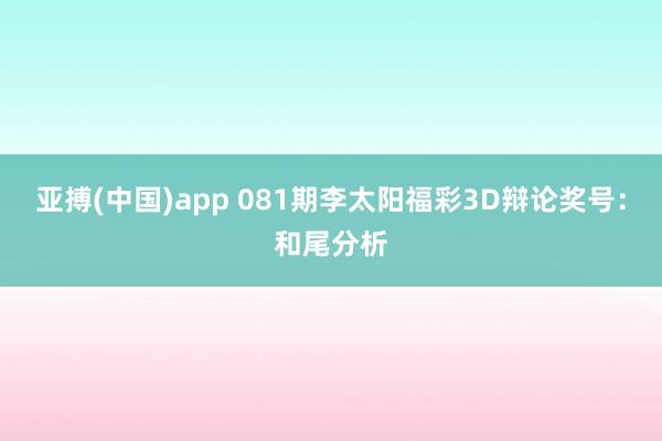 亚搏(中国)app 081期李太阳福彩3D辩论奖号:和尾分析