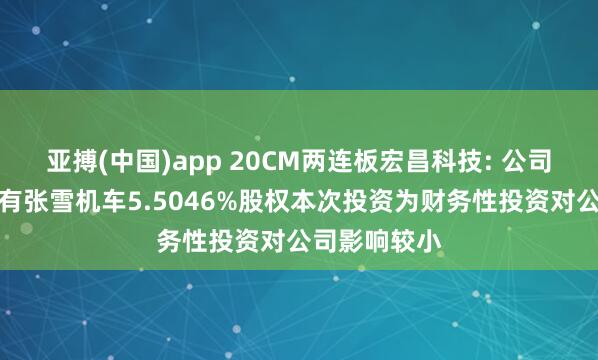 亚搏(中国)app 20CM两连板宏昌科技: 公司参设基金捏有张雪机车5.5046%股权本次投资为财务性投资对公司影响较小