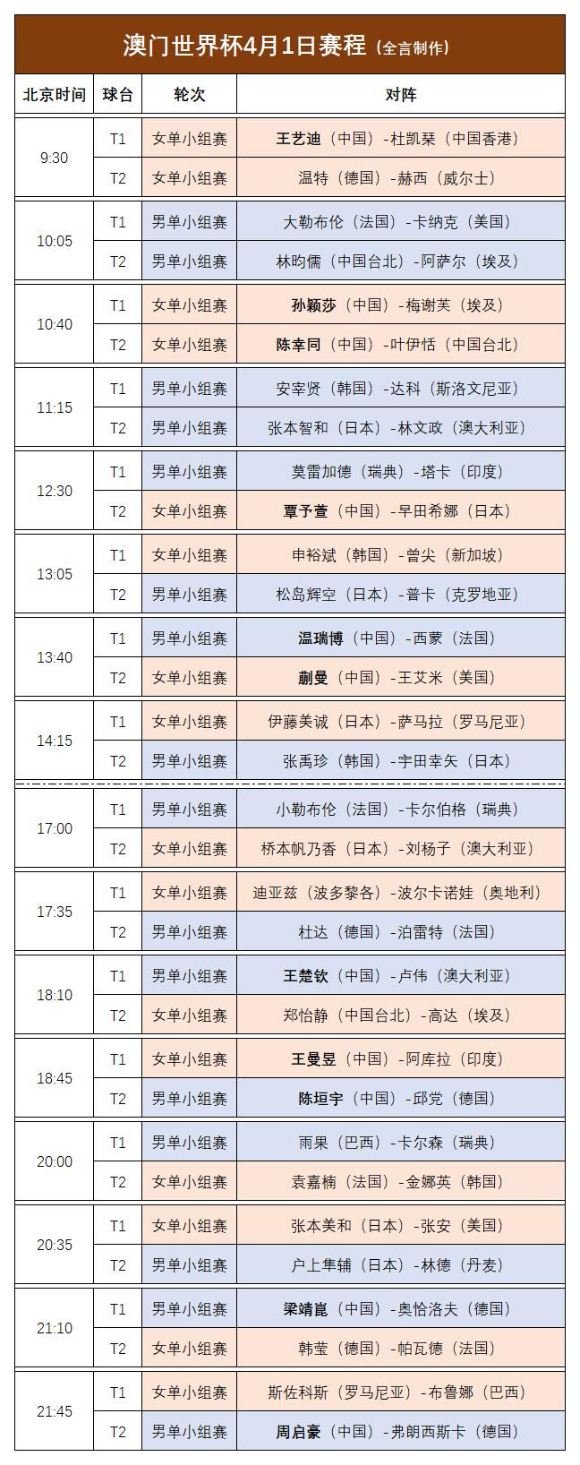 如前所说,4月1日将驱散澳门宇宙杯小组赛的通盘较量,国乒十一东说念主将在今天所有这个词登场、冲击第二阶段的门票,其中王艺迪在上昼9:30当先亮相、与中国香港队一姐杜凯琹过招,取胜即可赢得晋级,期待她能保合手适应的施展。