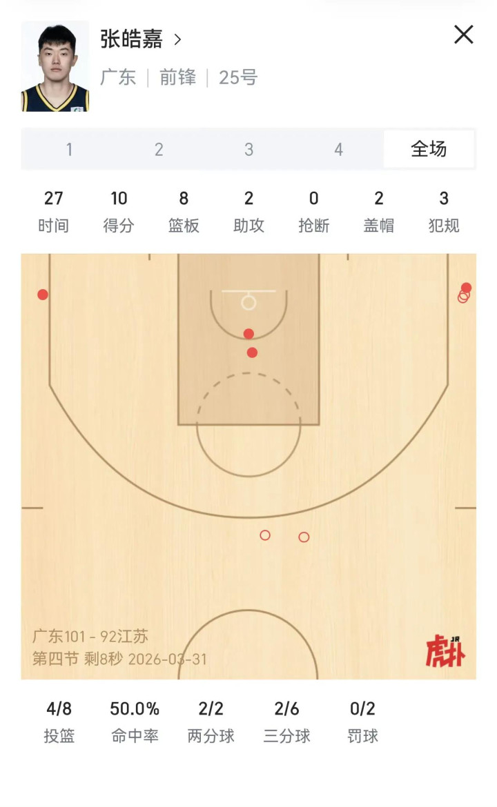 易边再战,收获于上半场诞生双位数率先上风,广东与江苏张开拉锯战,广东弥远保管着10分以上的率先。小节较量,江苏以庞峥麟为首张开豪恣反扑,一度将分差削弱至个位数,枢纽时分,前三节紧迫端景色低迷的张皓嘉站了出来,他先是射核心纽三分稳住场面,随后又用补篮、冲突相连取分,张皓嘉出战26分54秒,8投4中,三分6中2,拿到10分8篮板2助攻2盖帽,亚搏体育app成为广东小节奇兵。
