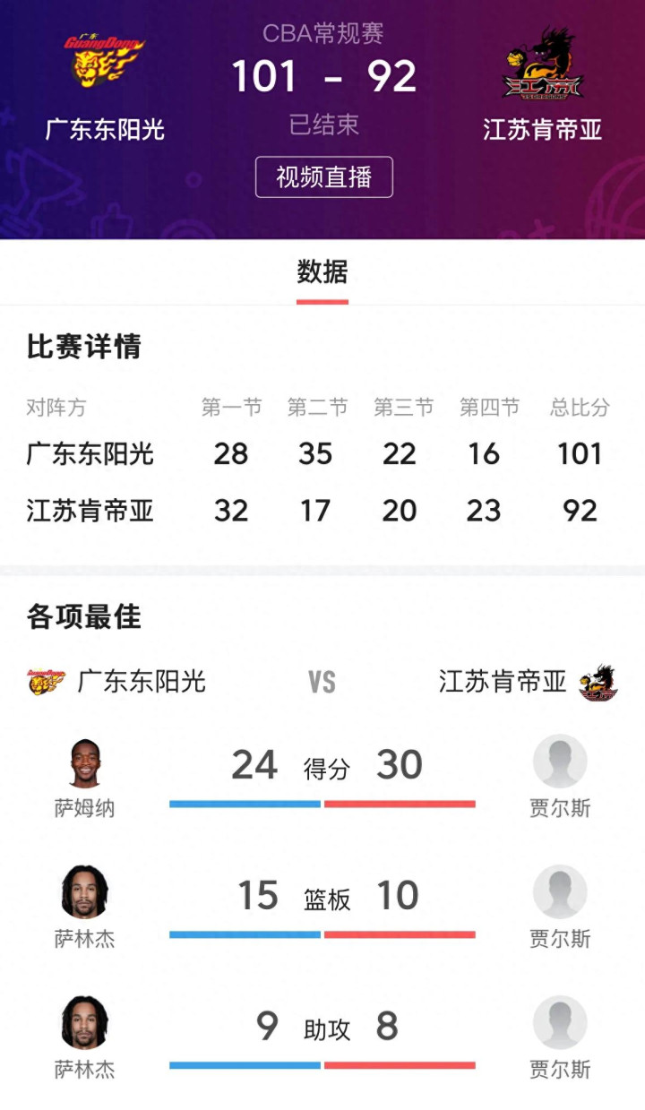 两队前一次交手,两边血战至临了一刻,江苏凭借吴羽佳临了1.9秒三分绝杀,爆冷打败广东。此役两队再度交手,广东的指标唯唯一个完成复仇。