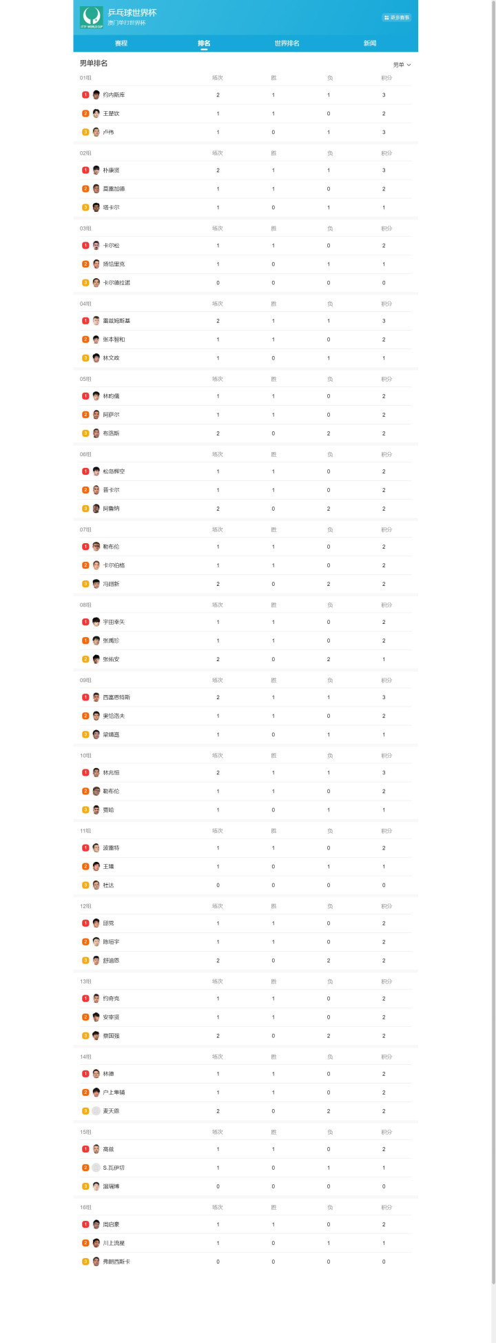 第六组与第五组的情况近似,松岛辉空和普卡尔分列前二,垫底的阿鲁纳提前出局,该组松岛辉空出现的可能性依然相比大。第七组和第八组也有人提前退出了16强争夺,冯翊新与张佑安亦然两战全负,小勒布伦和卡尔伯格分列第七组前两名,宇田幸矢和张禹珍分列第八组前两名。这几个分组,接下去都是一场定输赢,谁赢便可顺利出线。再来说说第十组,林兆恒1胜1负暂列第一,大勒布伦和贾哈分列二三名,终末一场的较量关乎着该组的出线情况。第12组里舒迪恩提前退出了争夺,邱党和陈垣宇将正面竞争独一出线席位,谁能笑到终末,依然挺值得期待的。