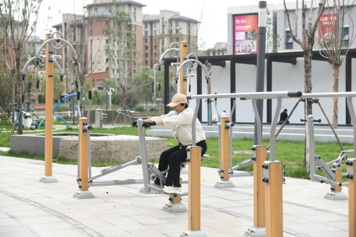 回迁住户在社区公园健身。受访社区供图