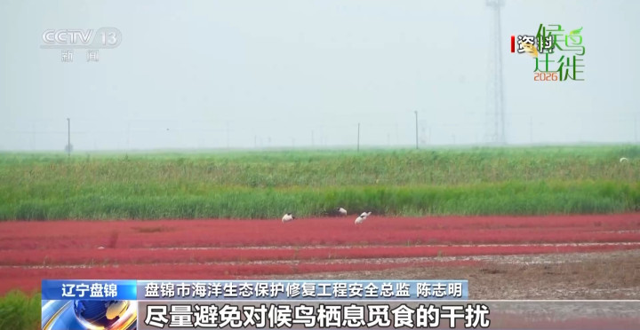 盘锦市海洋生态保护开导工程安全总监陈志明:在春天候鸟搬动期,咱们24小时监测鸟类举止,尽量幸免对候鸟栖息觅食的干涉。