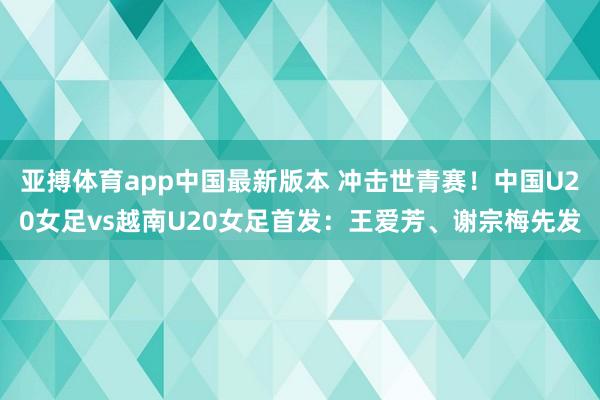 亚搏体育app中国最新版本 冲击世青赛!中国U20女足vs越南U20女足首发:王爱芳、谢宗梅先发