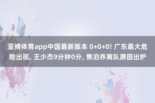 亚搏体育app中国最新版本 0+0+0! 广东最大危险出现, 王少杰9分钟0分, 焦泊乔离队原因出炉