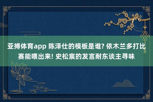 亚搏体育app 陈泽仕的模板是谁? 依木兰多打比赛能喂出来! 史松宸的发言耐东谈主寻味