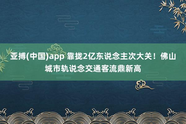 亚搏(中国)app 靠拢2亿东说念主次大关!佛山城市轨说念交通客流鼎新高