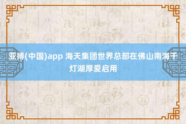 亚搏(中国)app 海天集团世界总部在佛山南海千灯湖厚爱启用