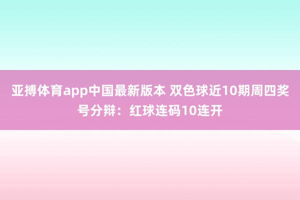 亚搏体育app中国最新版本 双色球近10期周四奖号分辩:红球连码10连开
