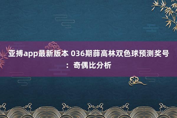 亚搏app最新版本 036期薛高林双色球预测奖号:奇偶比分析