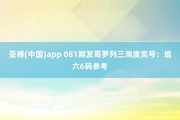 亚搏(中国)app 081期发哥罗列三测度奖号:组六6码参考
