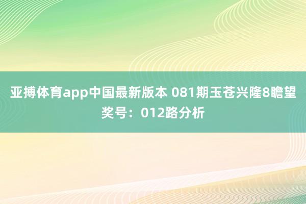 亚搏体育app中国最新版本 081期玉苍兴隆8瞻望奖号:012路分析