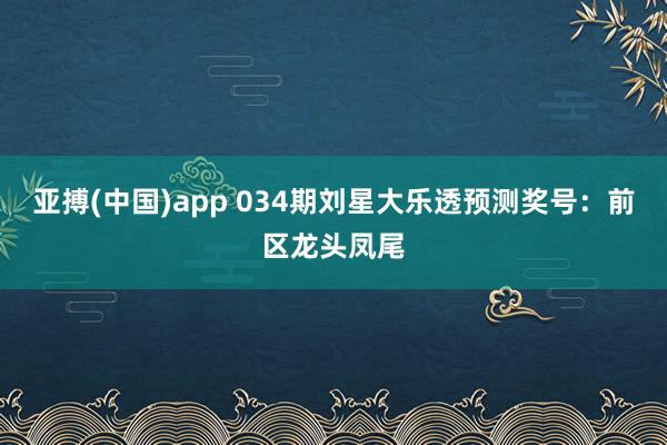 亚搏(中国)app 034期刘星大乐透预测奖号:前区龙头凤尾