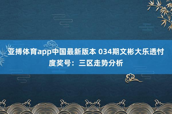 亚搏体育app中国最新版本 034期文彬大乐透忖度奖号:三区走势分析