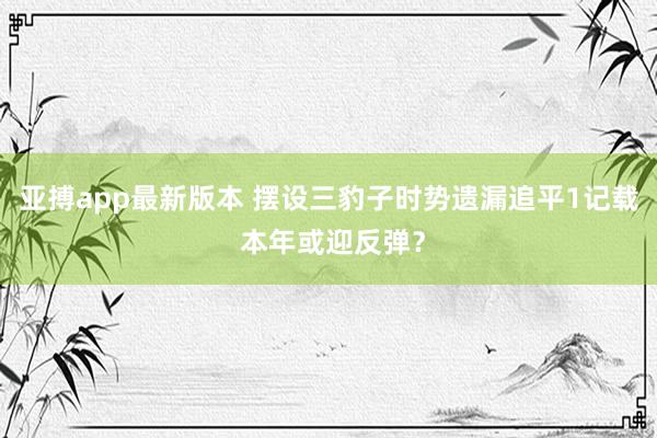 亚搏app最新版本 摆设三豹子时势遗漏追平1记载 本年或迎反弹?