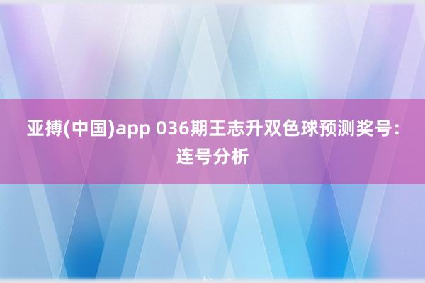 亚搏(中国)app 036期王志升双色球预测奖号:连号分析