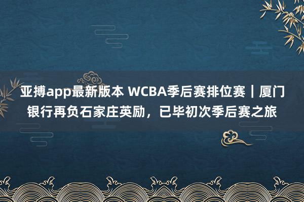 亚搏app最新版本 WCBA季后赛排位赛|厦门银行再负石家庄英励,已毕初次季后赛之旅