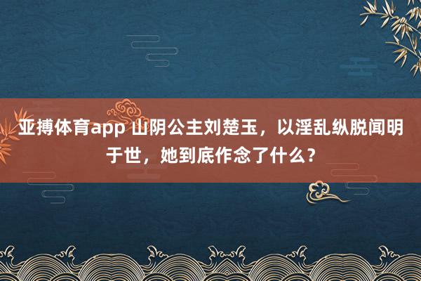 亚搏体育app 山阴公主刘楚玉,以淫乱纵脱闻明于世,她到底作念了什么?