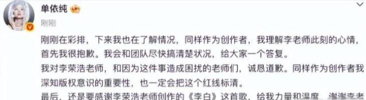 更好笑的是,事件发酵后,还有部分不解真相的粉丝发文辩解,宣称“《李白》是单依纯唱火的”,这番话几乎是倒置曲直。