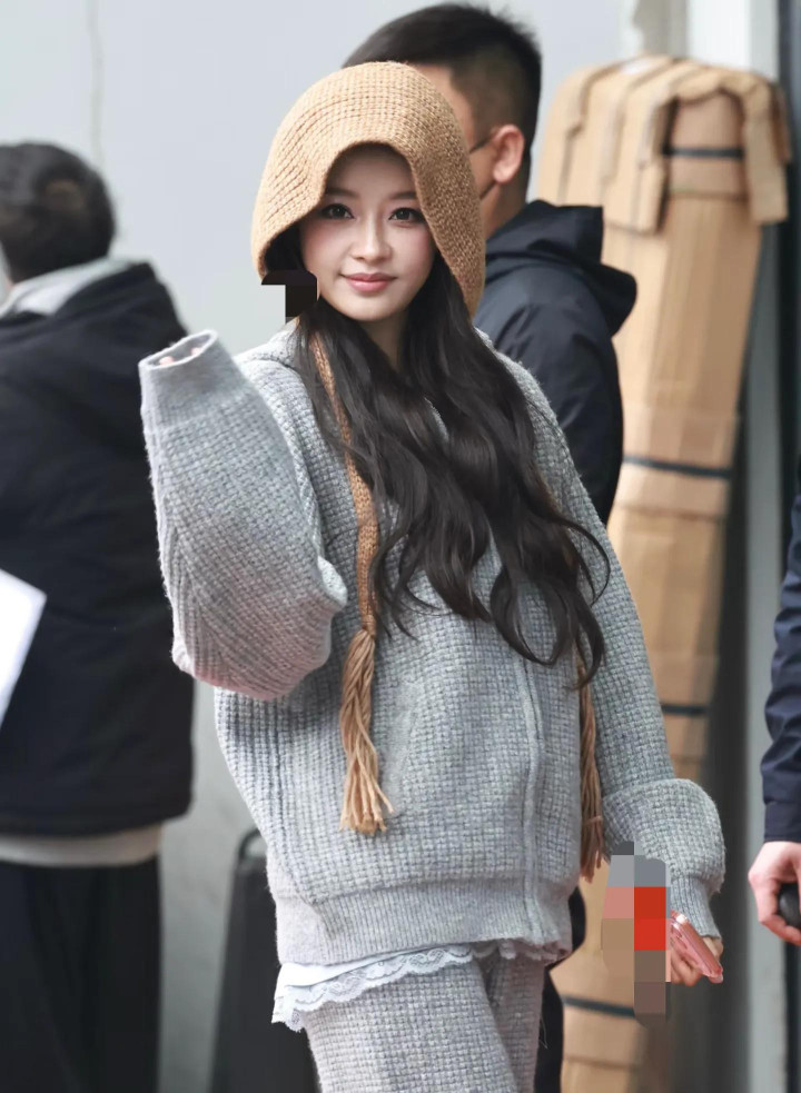 孙怡衣着浅灰色的赤诚套装,戴着咖色的赤诚帽子,打扮的太可人了,景象还挺仙女的。