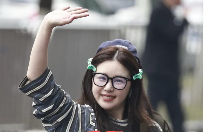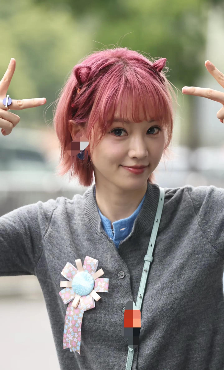 金灿灿一头红发短发,俏皮可人,头上还戴了一个粉色的小耳朵发箍,还挺减龄的,富足看不出她的信得过年齿。