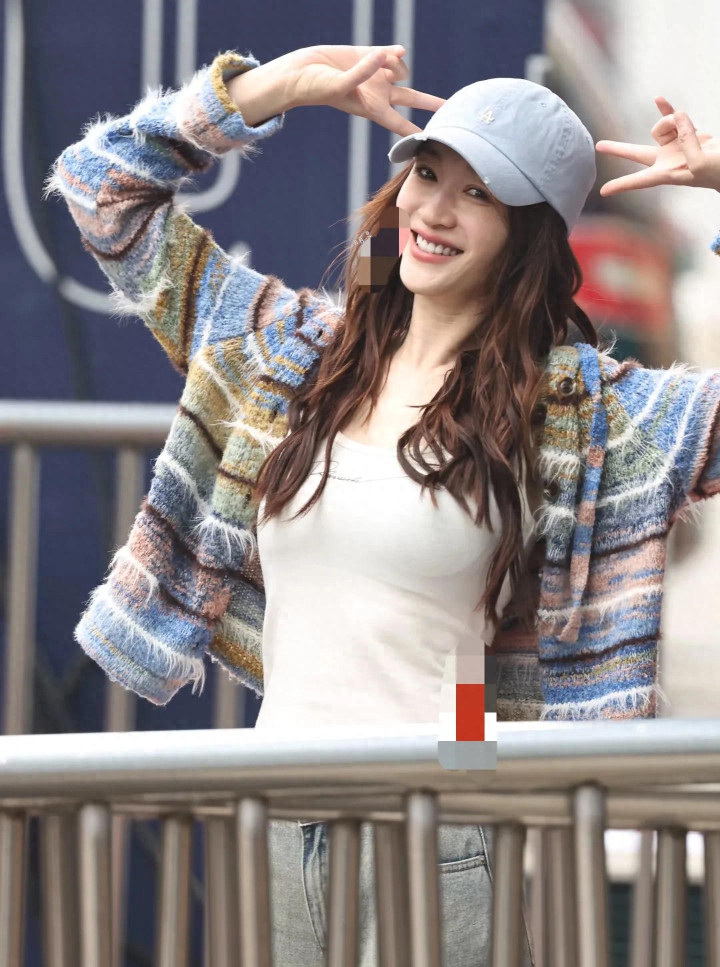 陈瑶衣着鹅黄色的赤诚开衫,搭配迷彩工装裤,带着鸭舌帽,因为下巴上长了痘痘,她还挑升贴了贴纸障翳,她这一套穿搭看起来也活力满满,很适合她。
