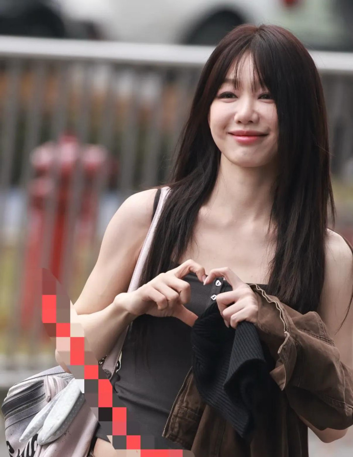 徐梦洁衣着吊带背心,体魄是简直很好,看起来就充满了芳华的气味,她还和公共手指比心,很会饭撒。
