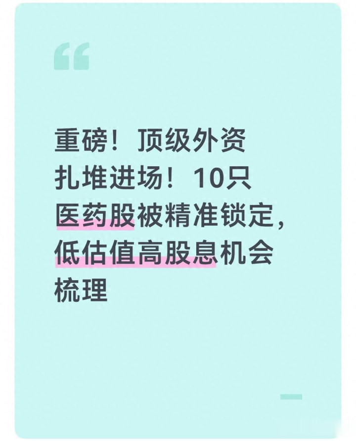 近期A股市集热门轮动加快,AI算力、光伏储能等热门赛说念波动加重,不少散户一又友追涨杀跌等闲赔本,而以高盛、瑞银、巴克莱为代表的顶级外资却悄然调转标的,并吞布局医药板块,10只医药股被精确纳入握仓名单。在现时市集风险偏好下降、资金寻求安全遁迹所的布景下,外资的集体手脚绝非就怕,背后藏着明晰的布局逻辑与行业拐点信号。今天我们就用大口语拆解外资重仓医药的中枢原因、硬核数据,以及板块的契机标的,全程干货无谎话,看完就能理清想路。