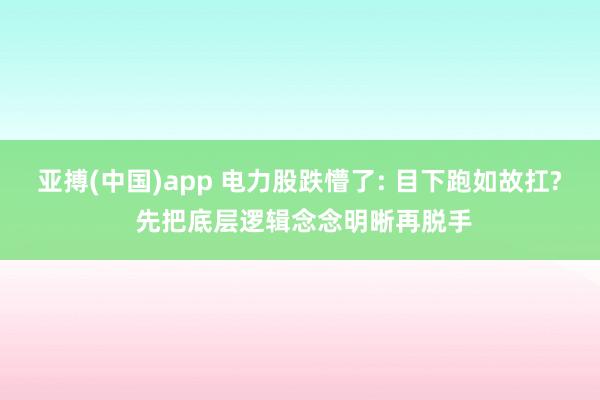 亚搏(中国)app 电力股跌懵了: 目下跑如故扛? 先把底层逻辑念念明晰再脱手