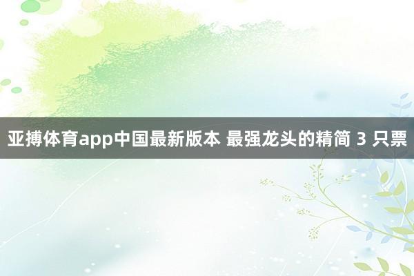 亚搏体育app中国最新版本 最强龙头的精简 3 只票