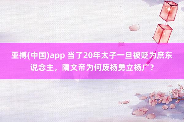亚搏(中国)app 当了20年太子一旦被贬为庶东说念主,隋文帝为何废杨勇立杨广?