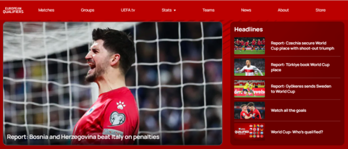 欧足联官网对4场附加赛决赛的报谈截图。