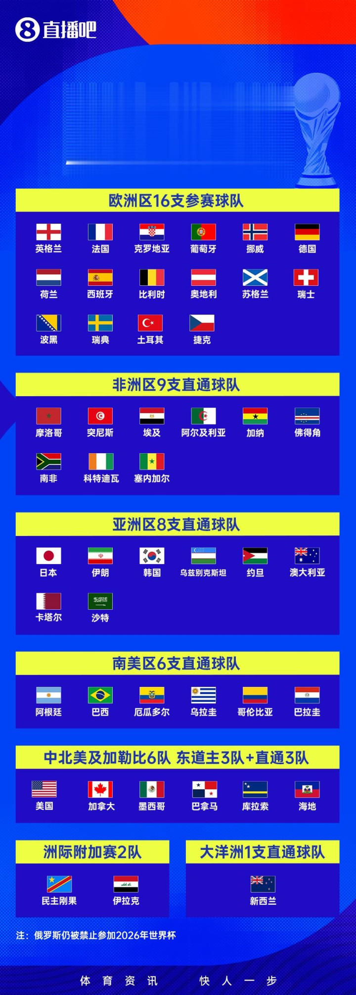直播吧04月01日讯2026好意思加墨天下杯洲际附加赛终末一场比赛,伊拉克2-1力克南好意思球队玻利维亚,拿到终末一张入场券,时隔40年重返天下杯!