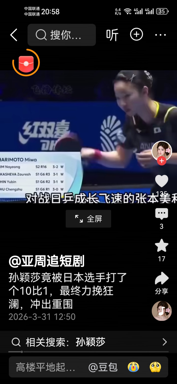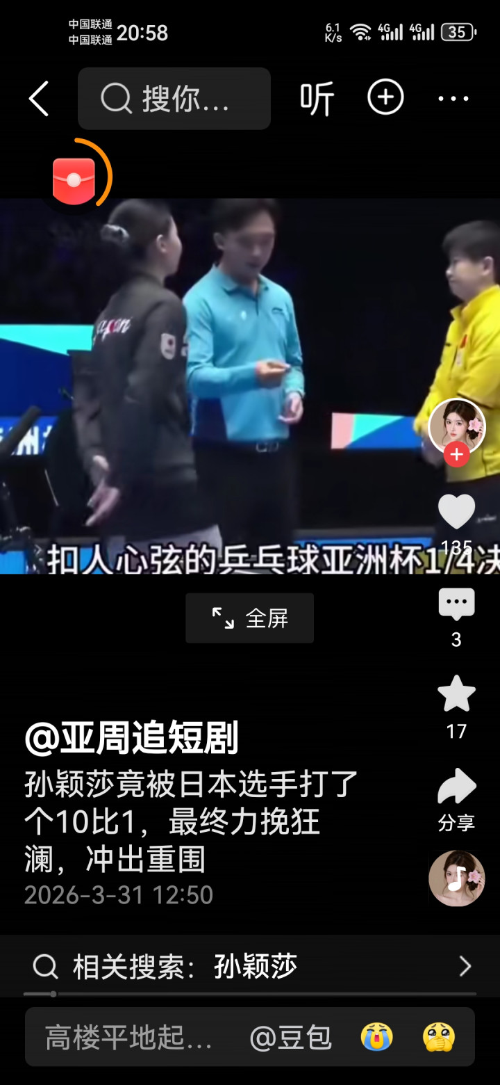 球迷们纷繁刷屏:“这才是着实的王者!不怕过期,生怕没斗志”“孙颖莎太牛了,10-1翻盘打服日本,国乒长久的神”“别再制造狂躁了,有莎莎在,中日乒乓的差距长久在!”