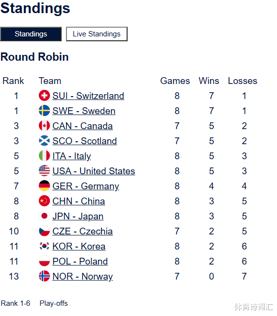 【积分榜】戒指1号上昼11点,亚搏app最新版本积分榜为:瑞士、瑞典7胜1负,加拿大、苏格兰5胜2负,意大利、好意思国5胜3负,德国4胜4负,中国、日本3胜5负,捷克2胜5负,韩国、波兰2胜6负,挪威0胜7负。