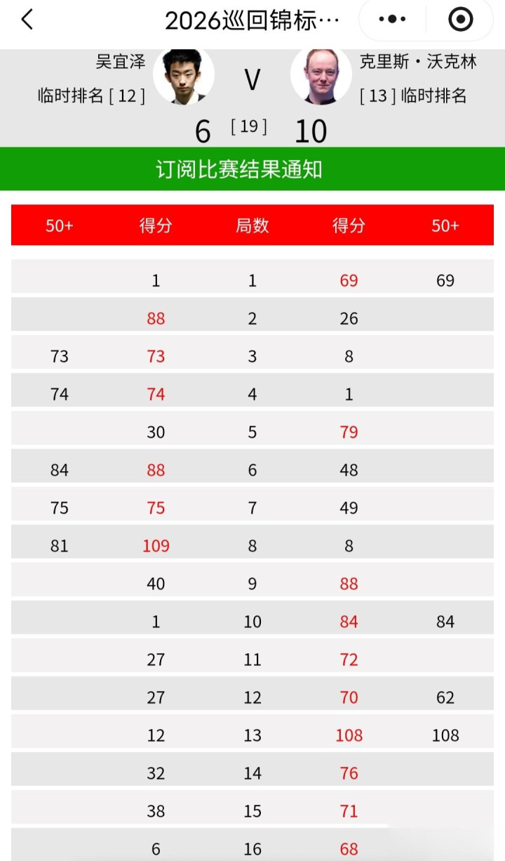 本次巡回锦标赛12强赛已闭幕,最让东说念主缺憾的是中国小将吴宜泽和秃子强韦克林的对决,前8局,吴宜泽意气风发虚幻开场,意然以6:2逾越,让小潼和中国球迷感奋不已并满腔眷注,无不认为其晋级必是铁板钉钉,但世事难料,东说念主算不如天算,第二阶段转头,吴宜泽判若两东说念主,有如四川变脸,虽有上手,但不成合手续,阐扬太过拉胯,效果让稳得一匹的韦克林一阵轻推慢打,心细如发(尽管他头上莫得一根头发),杀东说念主诛心,最终纵容一波8连鞭输出,而不成想议以10:6强势逆转晋级8强。全场单杆方面,吴宜泽仅在前八局打出5杆70加汉典,而后8局无一杆50加,如斯看来,不是韦克林太过宽广,而是我方击败我方。