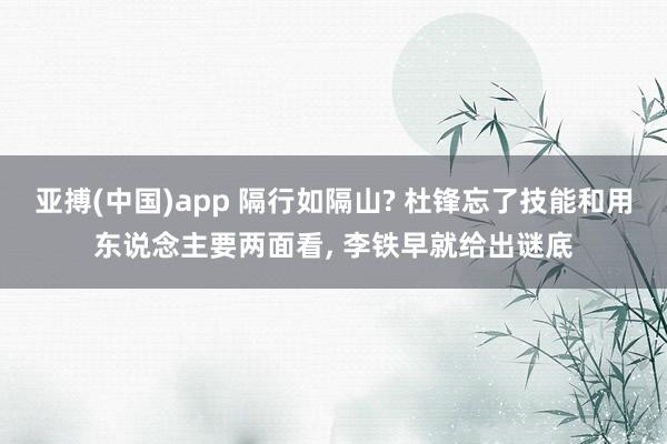 亚搏(中国)app 隔行如隔山? 杜锋忘了技能和用东说念主要两面看, 李铁早就给出谜底